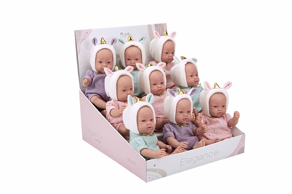 Lėlytės turi dailius rūbelus ir vienaragio kepurytes su derančiais akcentais.