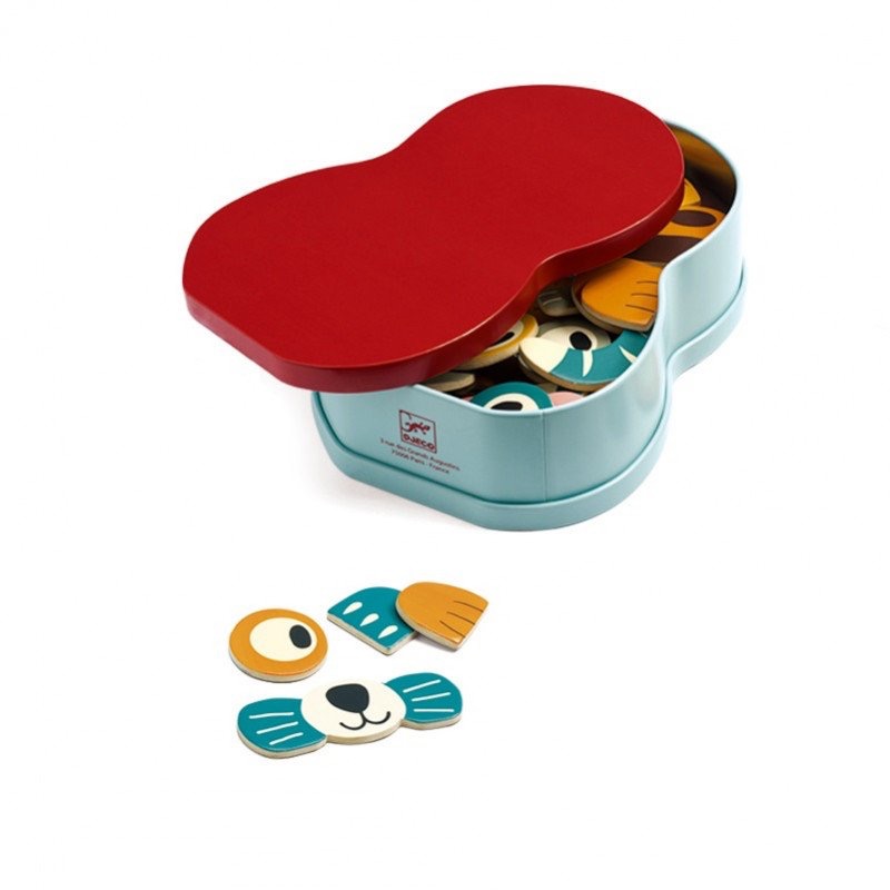 Kūrybinis rinkinys mažiesiems. Metalinė dėžutė, kurioje yra medinės/magnetinės detalės.