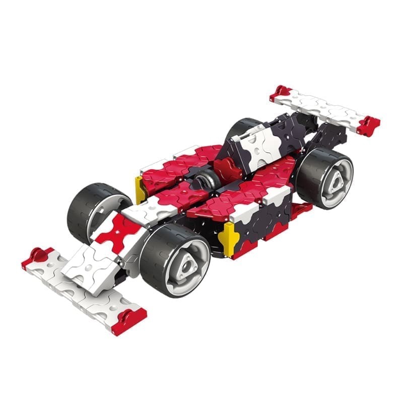 Vienas populiariausių ryškios raudonos spalvos lenktyninio automobilio rinkinys patiks visiems, mėgstantiems automobilius ir lenktynes! Iš rinkinio detalių, be lenktyninio automobilio, Jūsų vaikas dar galės sukonstruoti ir lenktyninį motociklą, motorinę valtį, aviacinį lėktuvą bei originalaus dizaino Buggy automobilį.