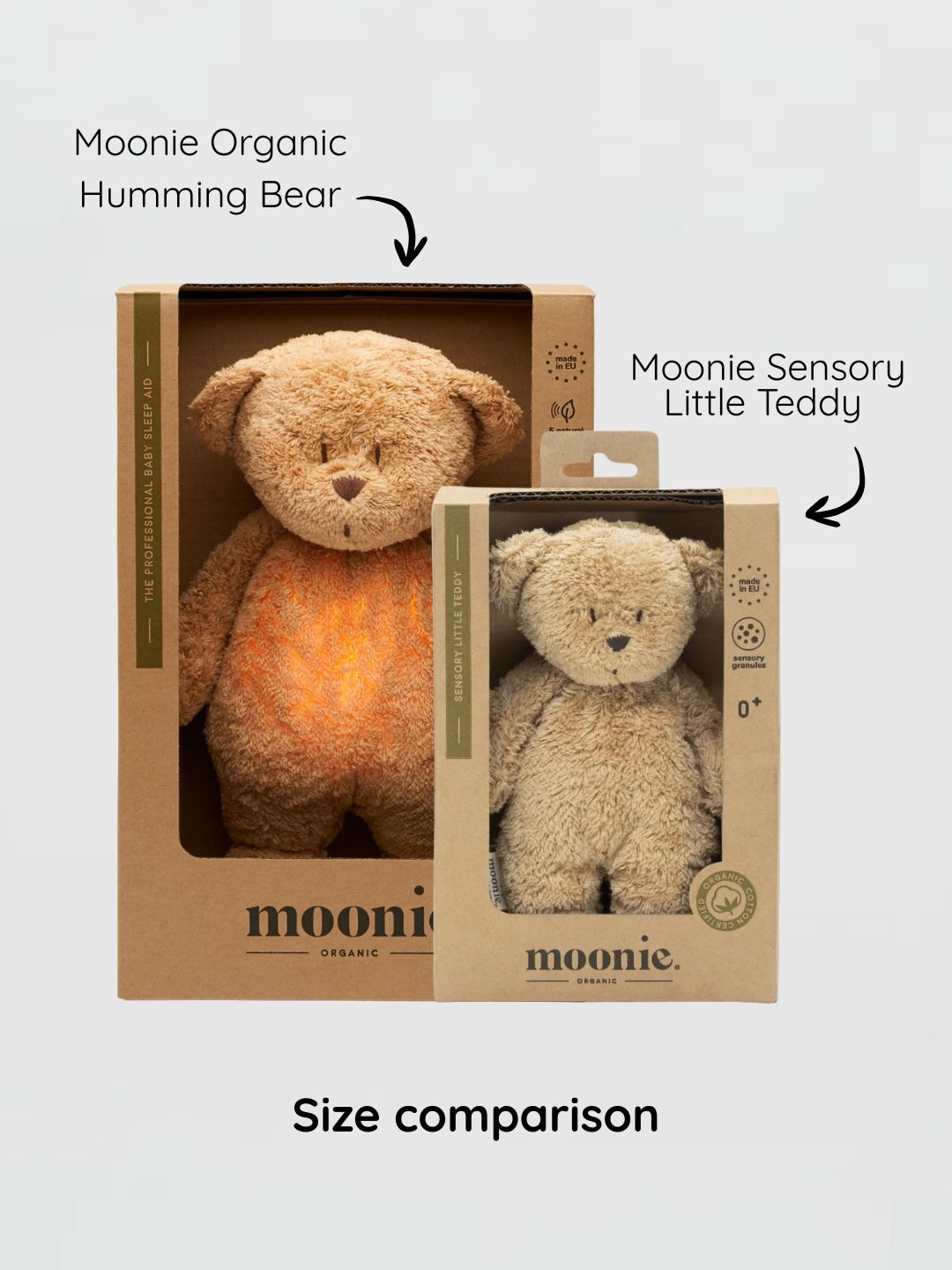 MOONIE sensorinis meškiukas – tai švelnus ir saugus pirmasis kūdikio draugas nuo pat gimimo. Sukurtas skatinti sensorinį vystymąsi, lavinti smulkiąją motoriką ir žadinti vaizduotę kasdieniuose žaidimuose.